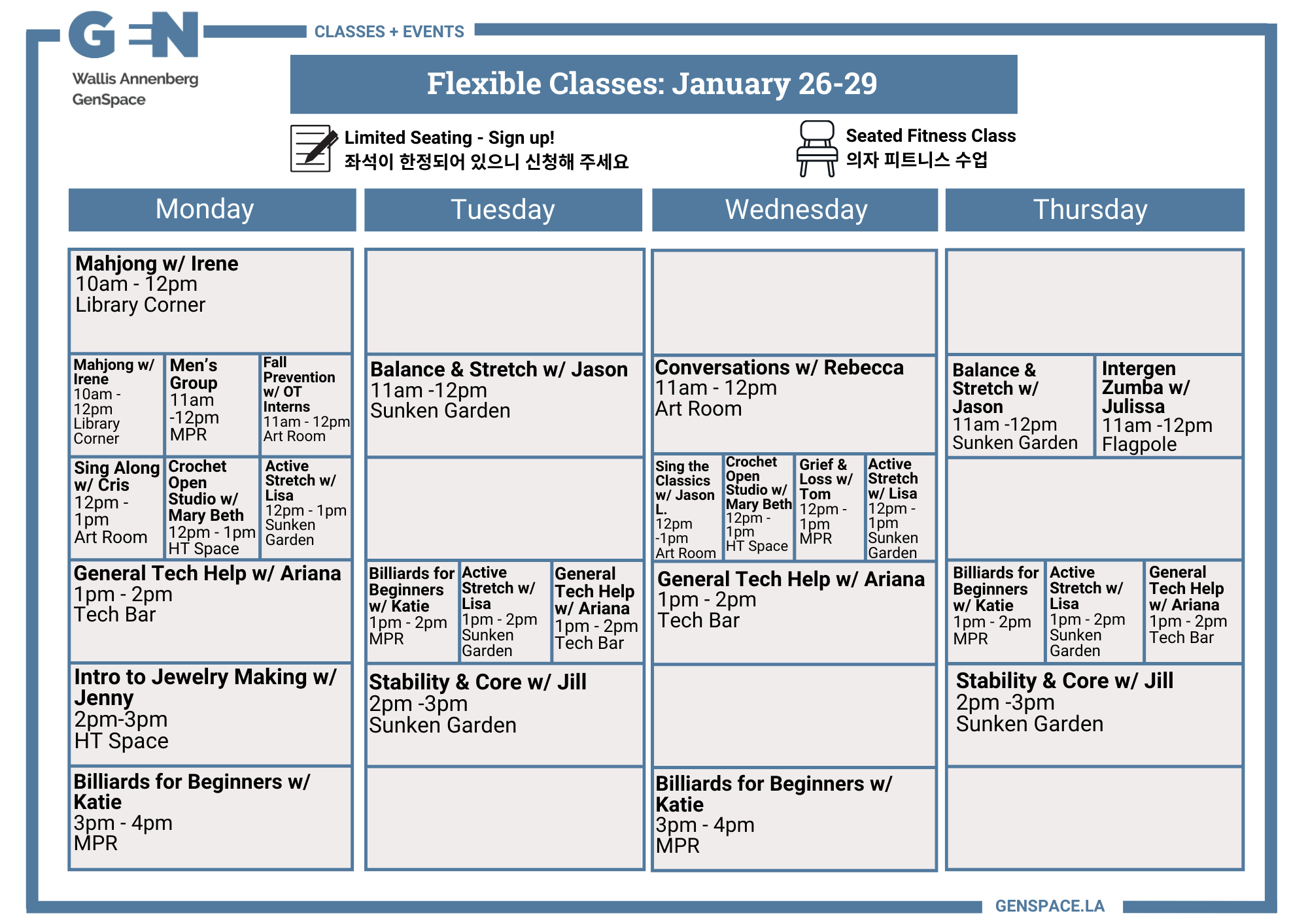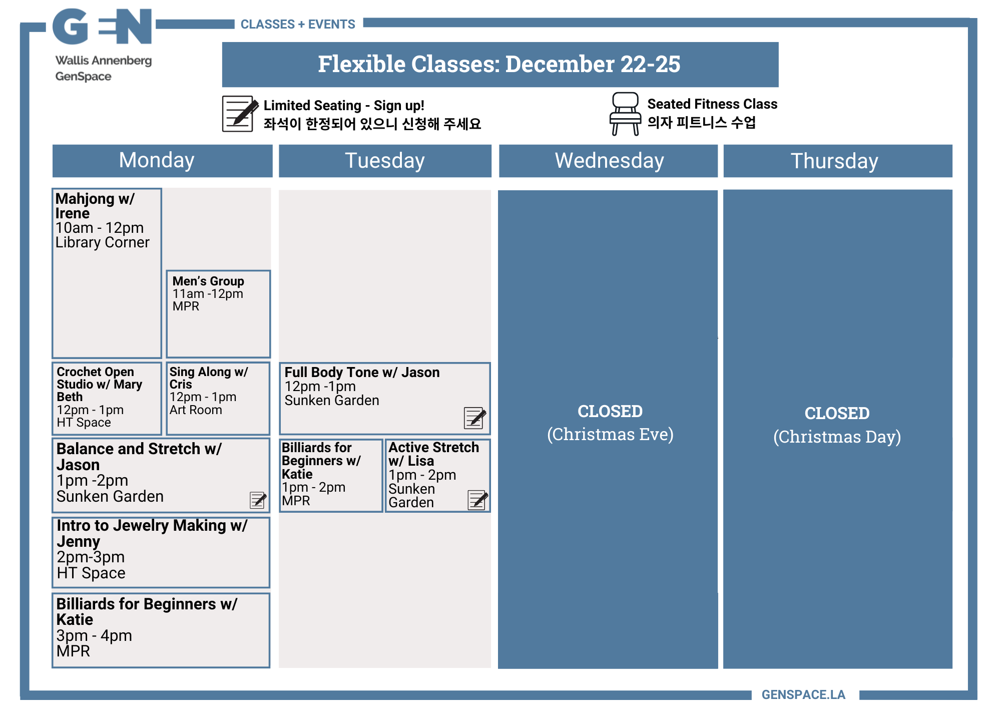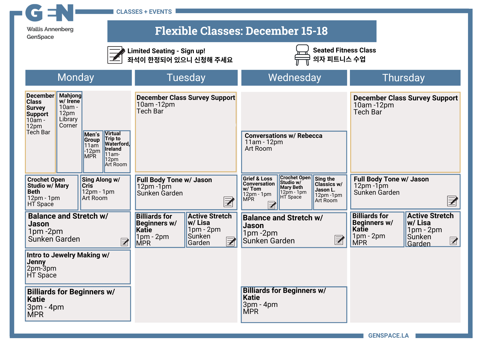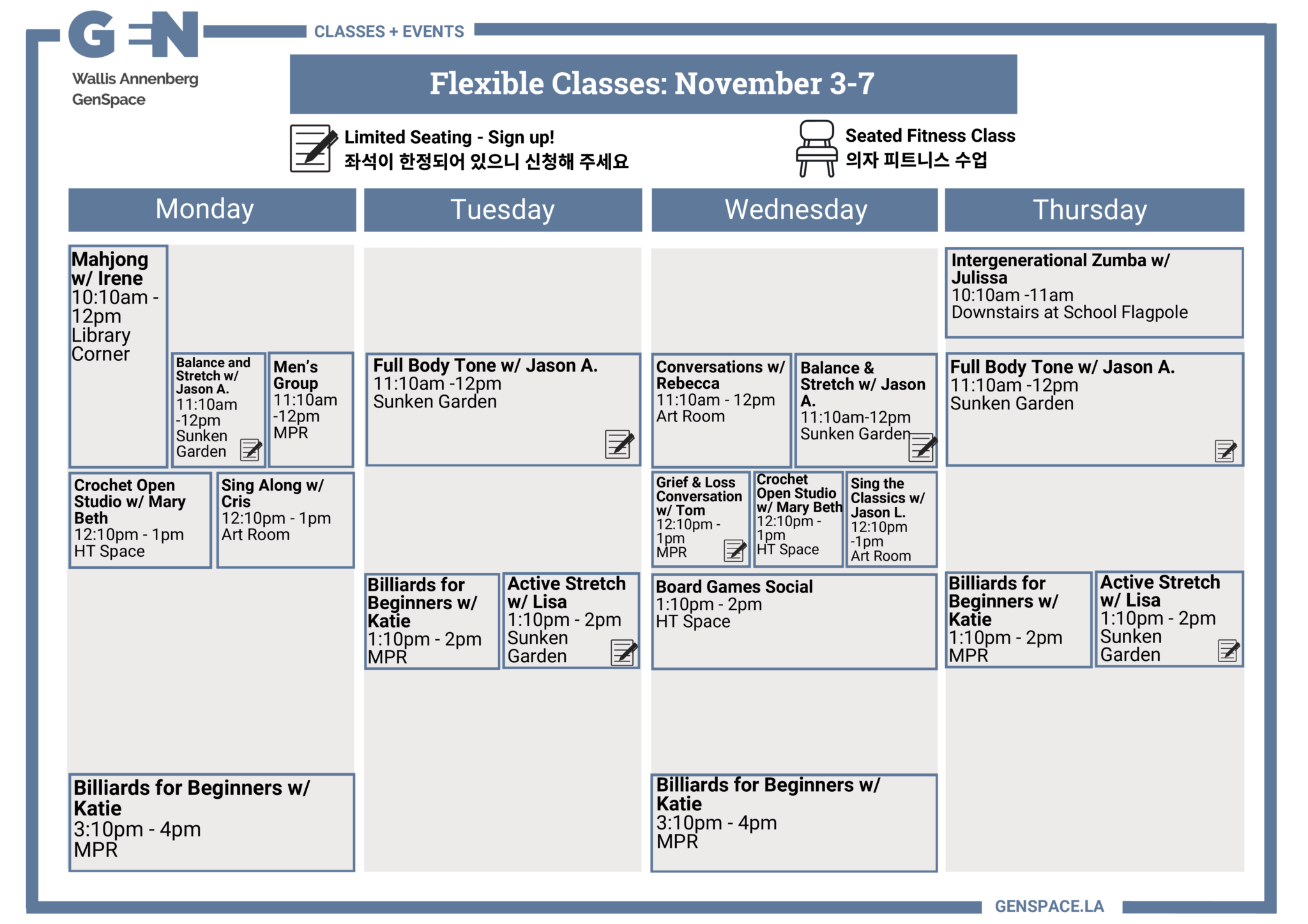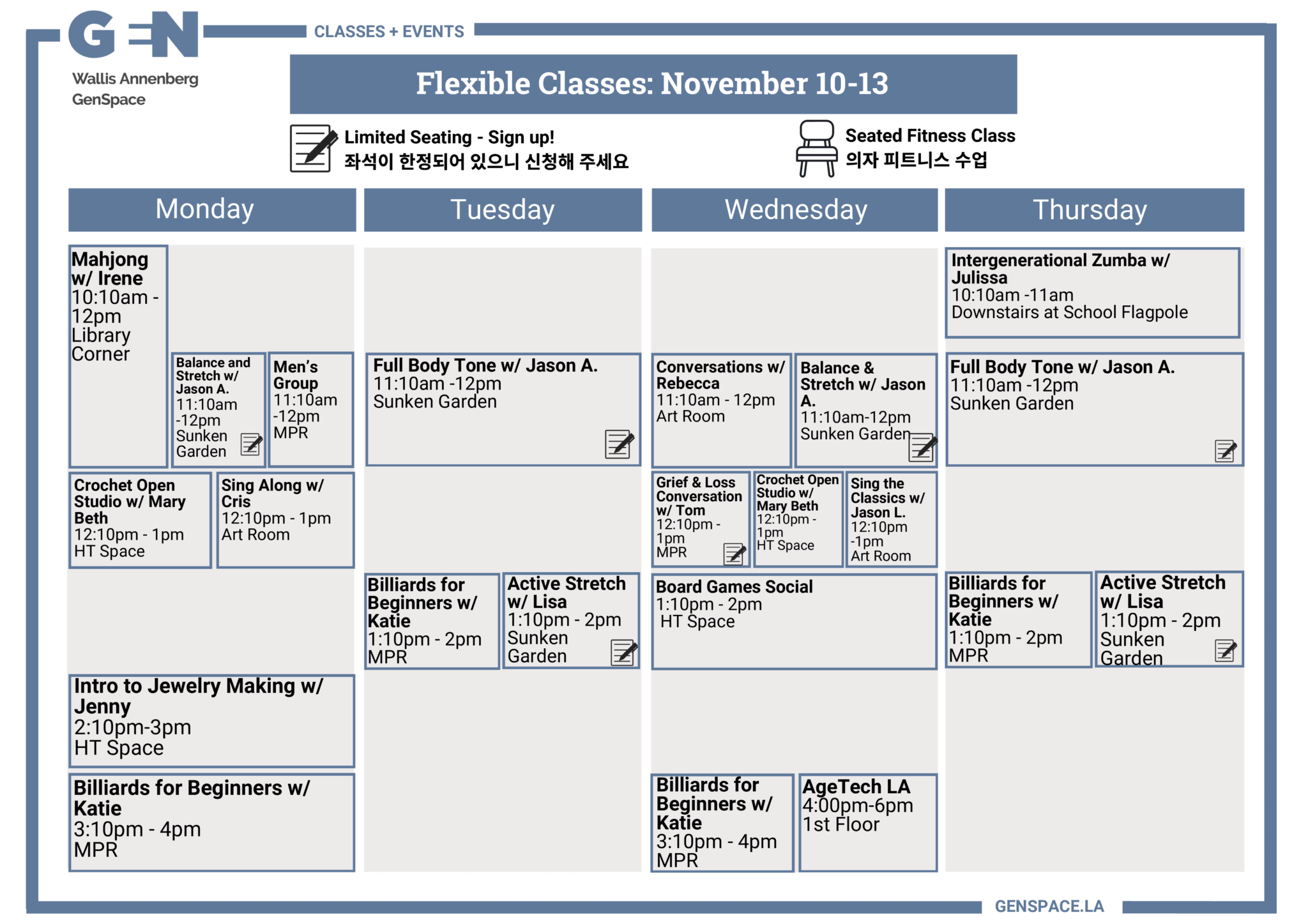 Connect now with others, discover new interests, and explore ways to live happily and healthily with exciting new classes, special events, and other activities at GenSpace.