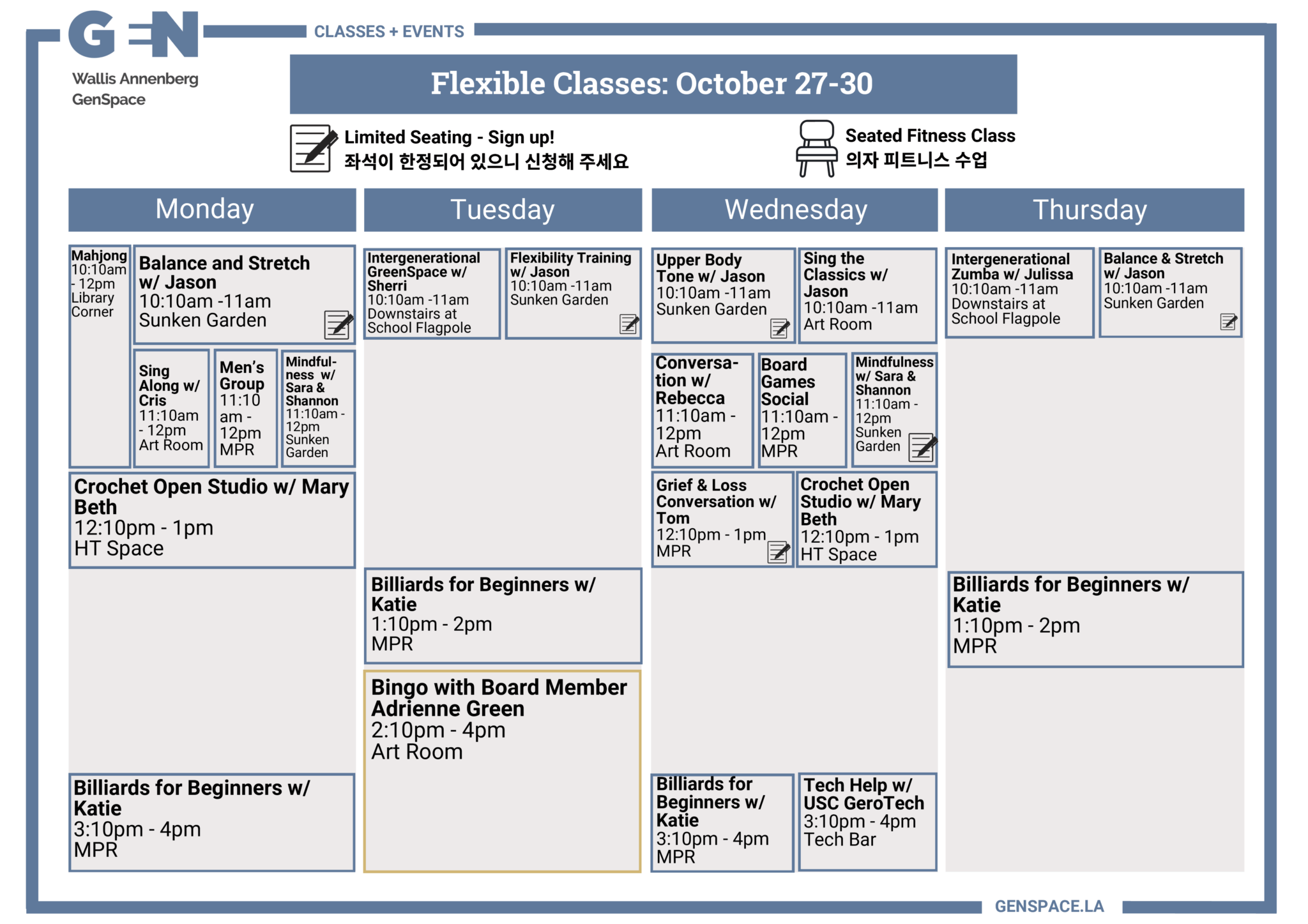 Connect now with others, discover new interests, and explore ways to live happily and healthily with exciting new classes, special events, and other activities at GenSpace.